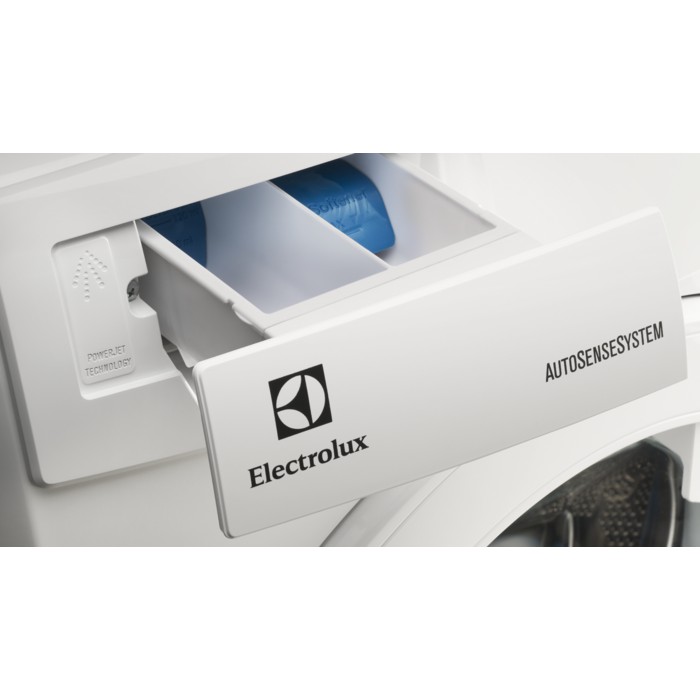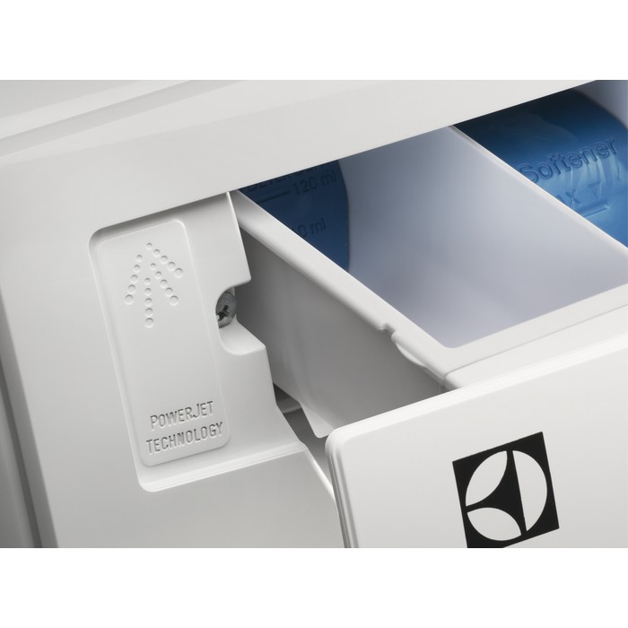 Tato pračka je vybavena technologií PowerJet s vysokotlakými vodními tryskami, které využívají veškerý prací prostředek v dávkovači. Díky tomu zůstane dávkovač vždy dokonale čistý bez lepkavých zbytků nebo možné tvorby plísní.