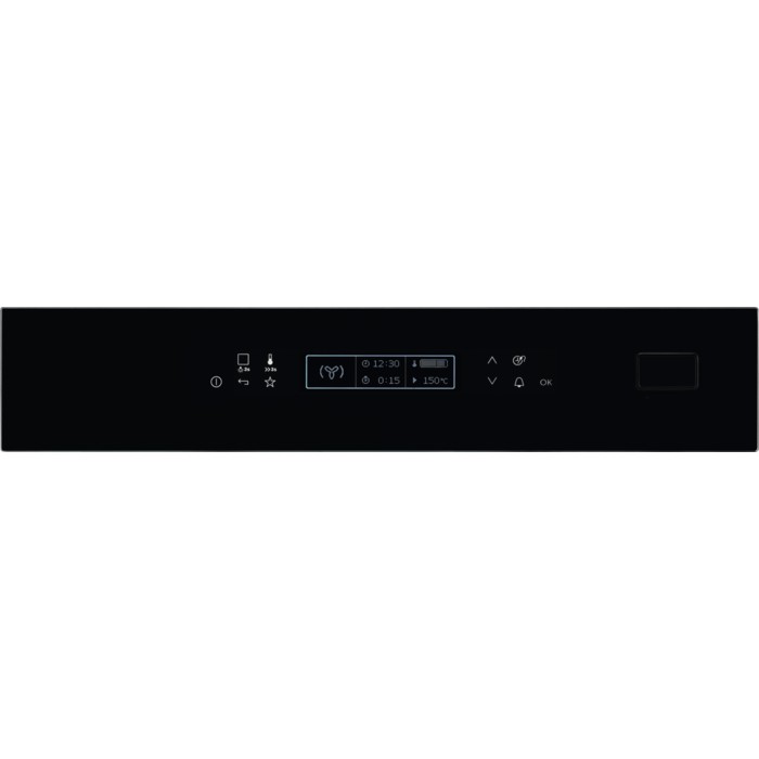 * Multifunkční trouba o objemu 69 l; Provedení černé sklo, nerezové madlo, nerezové otočné voliče; Energetická třída A; 9 funkcí trouby; Horkovzdušné pečení; Gril, Pizza; 2 vrstvy skla ve dveřích; Chromované boční vodící rošty; 1 ks mělký plech